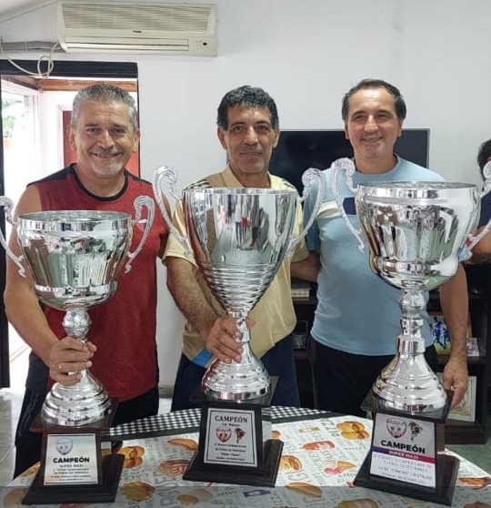 Y ya como una ceremonia, a fin de año, se junta el plantel para festejar y mostrar las Copas ganas en buena ley.