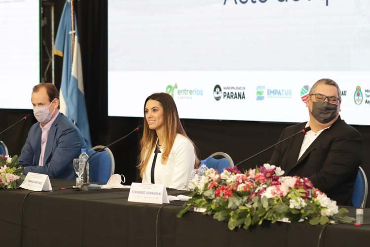 Yanina Martínez, secretaria de Promoción Turística de la Nación, junto al gobernador Gustavo Bordet y el titular de AOCA Fernando Gorbarán.