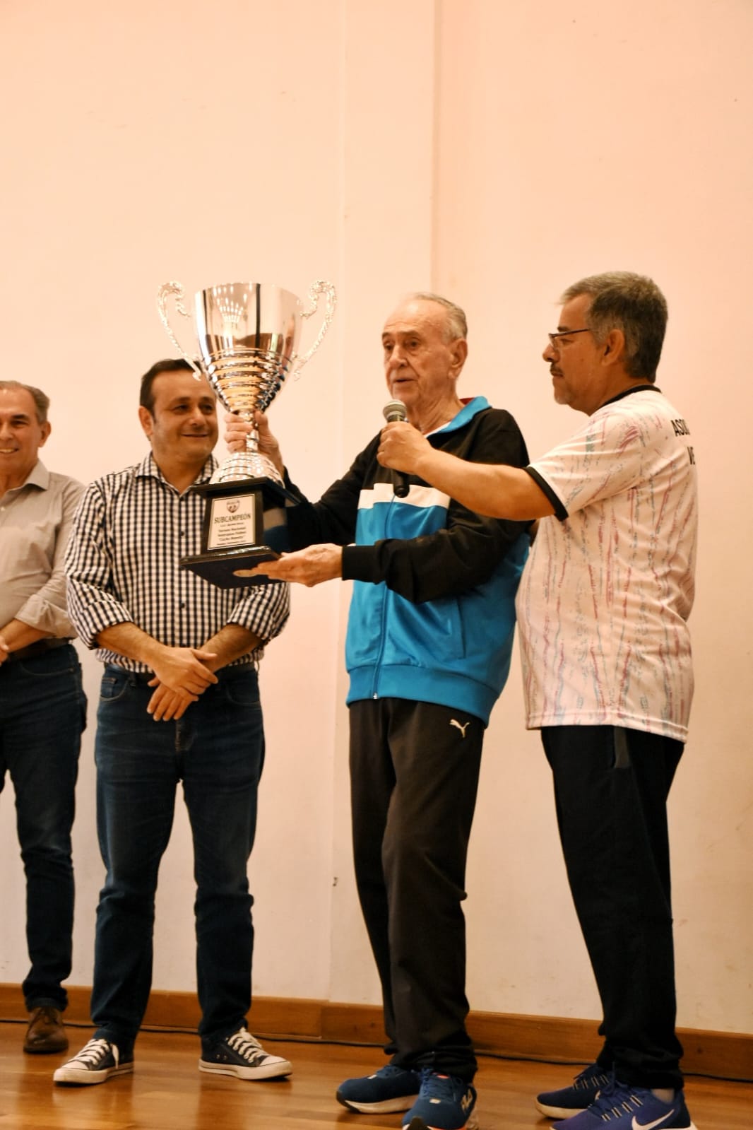 Ángel Repetto recibió, de mano del gobernador Ahuad y el presidente de la AAVF, Comas, la Copa de manera simbólica.