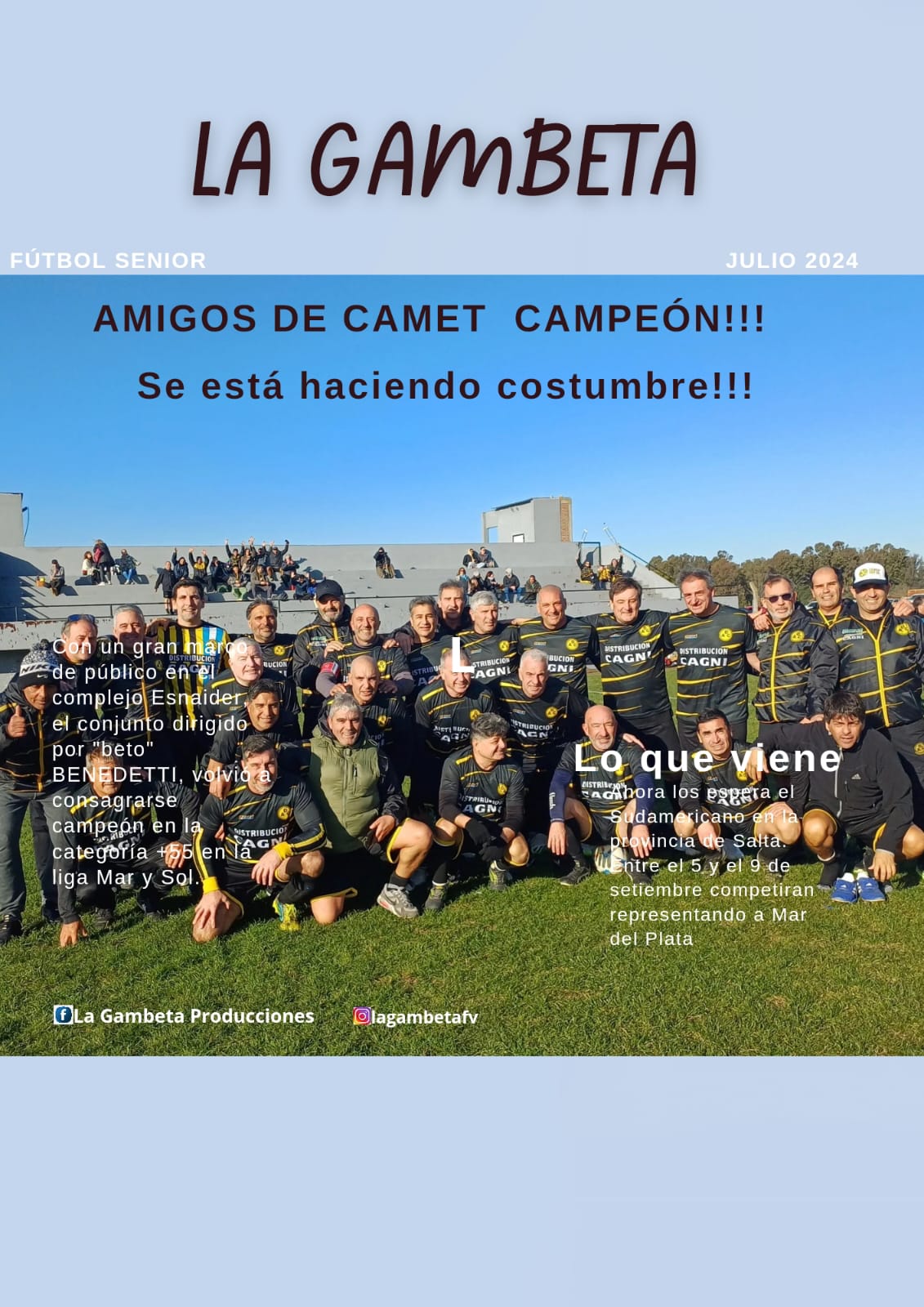 “Que de la mano de Benedetti”. Así cantaban los +55 de Amigos de Camet al volver a consagrarse campeones del Torneo Mar y Sol que se disputó en el Complejo Juan Esnaider de Mar del Plata.